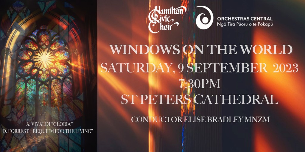 For this concert, the choir is delighted to be joined by soloists Anna Leese & Elisha Fa’i-So’oialo and an Orchestras Central ensemble. The venue for this concert is St Peter’s Cathedral, a very apt setting for these two works. We look forward to sharing windows on the world with you.